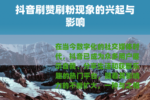在当今数字化的社交媒体时代,抖音已成为众多用户展示自我、分享生活和获取乐趣的热门平台,随着其影响力的不断扩大,一种与之相关的现象——抖音刷赞刷粉也逐渐兴起,引起了广泛的关注和讨论。