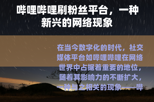在当今数字化的时代,社交媒体平台如哔哩哔哩在网络世界中占据着重要的地位,随着其影响力的不断扩大,一种与之相关的现象——哔哩哔哩刷粉丝平台也应运而生。
