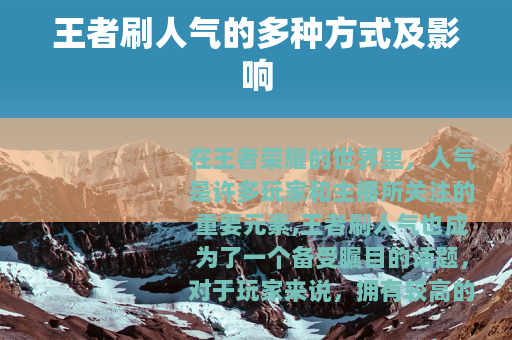 在王者荣耀的世界里,人气是许多玩家和主播所关注的重要元素,王者刷人气也成为了一个备受瞩目的话题。