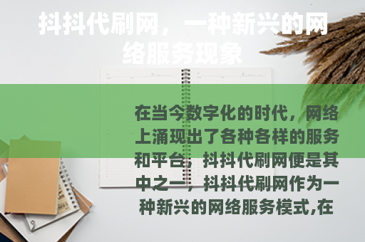 在当今数字化的时代,网络上涌现出了各种各样的服务和平台,抖抖代刷网便是其中之一,抖抖代刷网作为一种新兴的网络服务模式,在一定程度上满足了部分用户在社交平台上的特定需求。