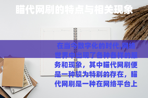 在当今数字化的时代,网络世界中出现了各种各样的服务和现象,其中瞄代网刷便是一种较为特别的存在。