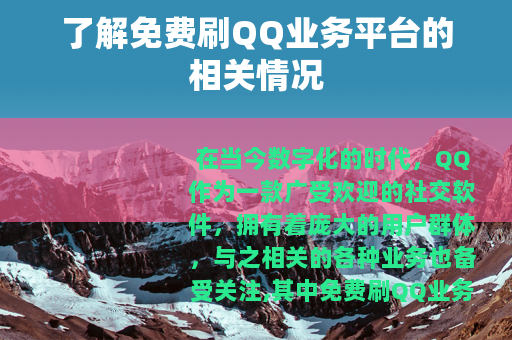 在当今数字化的时代,QQ作为一款广受欢迎的社交软件,拥有着庞大的用户群体,与之相关的各种业务也备受关注,其中免费刷QQ业务平台在网络上引起了不少人的兴趣。