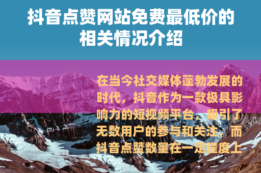 在当今社交媒体蓬勃发展的时代,抖音作为一款极具影响力的短视频平台,吸引了无数用户的参与和关注,而抖音点赞数量在一定程度上反映了视频的受欢迎程度,于是一些所谓的抖音点赞网站免费最低价的信息开始在网络上出现。