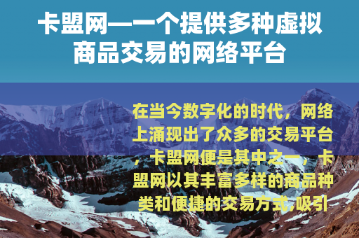 在当今数字化的时代,网络上涌现出了众多的交易平台,卡盟网便是其中之一,卡盟网以其丰富多样的商品种类和便捷的交易方式,吸引了众多用户的关注。