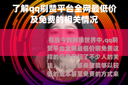 在当今的网络世界中,qq刷赞平台全网最低价啊免费这样的信息引起了不少人的关注,许多人都希望能够以较低的成本甚至免费的方式来提升自己在QQ空间等社交平台上的点赞数量,从而获得更多的人气和关注度。