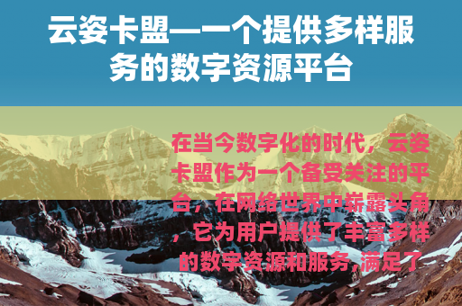 在当今数字化的时代,云姿卡盟作为一个备受关注的平台,在网络世界中崭露头角,它为用户提供了丰富多样的数字资源和服务,满足了不同人群的各种需求。