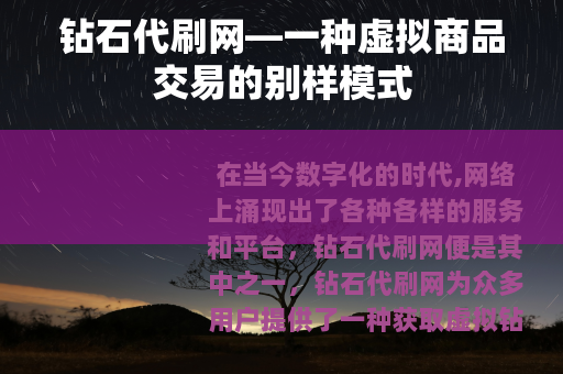 在当今数字化的时代,网络上涌现出了各种各样的服务和平台,钻石代刷网便是其中之一,钻石代刷网为众多用户提供了一种获取虚拟钻石等游戏或平台货币的途径。