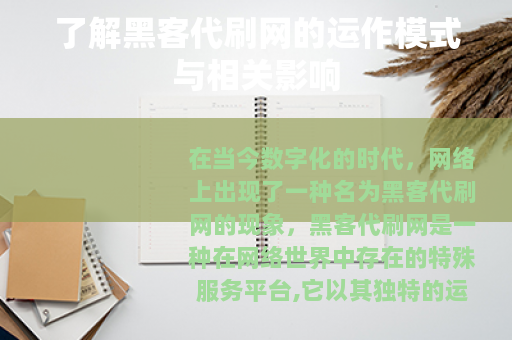 在当今数字化的时代,网络上出现了一种名为黑客代刷网的现象,黑客代刷网是一种在网络世界中存在的特殊服务平台,它以其独特的运作方式吸引着众多用户的关注。
