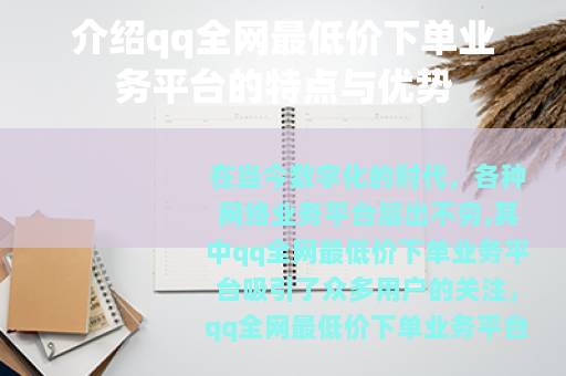 在当今数字化的时代,各种网络业务平台层出不穷,其中qq全网最低价下单业务平台吸引了众多用户的关注。
