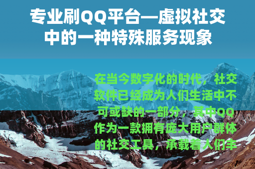 在当今数字化的时代,社交软件已经成为人们生活中不可或缺的一部分,其中QQ作为一款拥有庞大用户群体的社交工具,承载着人们丰富多彩的社交生活,在这个背景下,专业刷QQ平台应运而生,它为用户提供了一系列与QQ相关的特殊服务,在虚拟社交领域中形成了一种独特的现象。