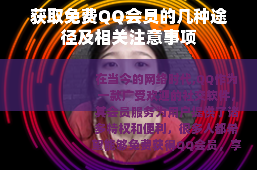 在当今的网络时代,QQ作为一款广受欢迎的社交软件,其会员服务为用户提供了诸多特权和便利,很多人都希望能够免费获得QQ会员,享受诸如等级加速、专属表情、红名显示等一系列的特殊待遇,以下就为大家介绍一些可能获取免费QQ会员的途径及相关情况。