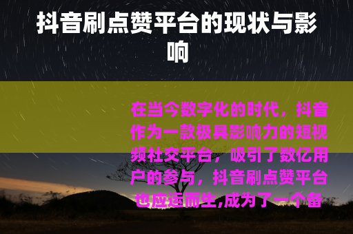 抖音刷点赞平台的出现是抖音发展过程中的一个阶段性现象,随着各方的共同努力和社会环境的变化,抖音平台将不断完善和发展,为用户提供一个更加健康、公平、优质的短视频社交环境,我们期待着在未来,抖音能够继续发挥其独特的优势,为人们的生活带来更多的乐趣和价值,成为数字文化领域的一颗璀璨明珠。
