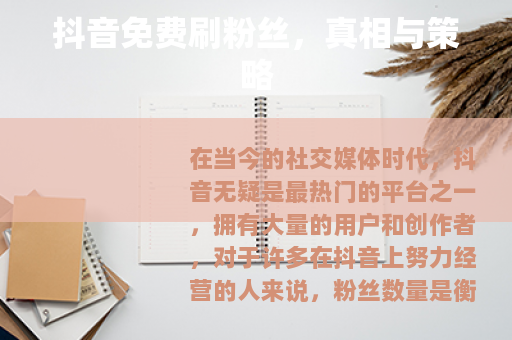 在当今的社交媒体时代,抖音无疑是最热门的平台之一,拥有大量的用户和创作者,对于许多在抖音上努力经营的人来说,粉丝数量是衡量成功的一个重要指标,抖音免费刷粉丝的话题便应运而生,吸引了众多人的关注。