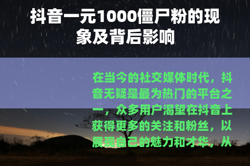 在当今的社交媒体时代,抖音无疑是最为热门的平台之一,众多用户渴望在抖音上获得更多的关注和粉丝,以展现自己的魅力和才华,从而实现各种目标,如成为网红、推广产品或仅仅是获得更多的社交认可,而在这个过程中,一种奇特的现象悄然兴起,那就是所谓的“抖音一元1000僵尸粉”。