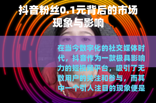 在当今数字化的社交媒体时代,抖音作为一款极具影响力的短视频平台,吸引了无数用户的关注和参与,而其中一个引人注目的现象便是所谓的“抖音粉丝0.1元”。