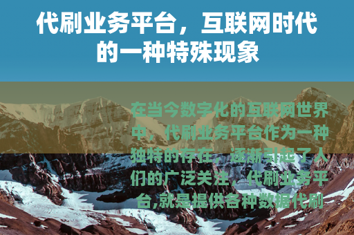在当今数字化的互联网世界中,代刷业务平台作为一种独特的存在,逐渐引起了人们的广泛关注,代刷业务平台,就是提供各种数据代刷服务的在线平台。