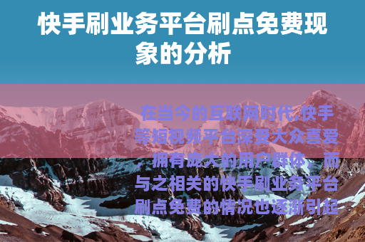 在当今的互联网时代,快手等短视频平台深受大众喜爱,拥有庞大的用户群体,而与之相关的快手刷业务平台刷点免费的情况也逐渐引起了人们的关注。