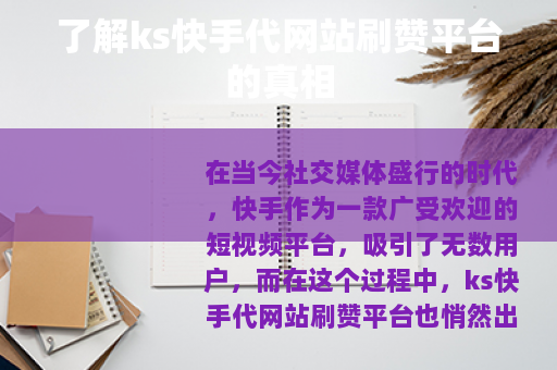 在当今社交媒体盛行的时代,快手作为一款广受欢迎的短视频平台,吸引了无数用户,而在这个过程中,ks快手代网站刷赞平台也悄然出现,引发了不少人的关注。