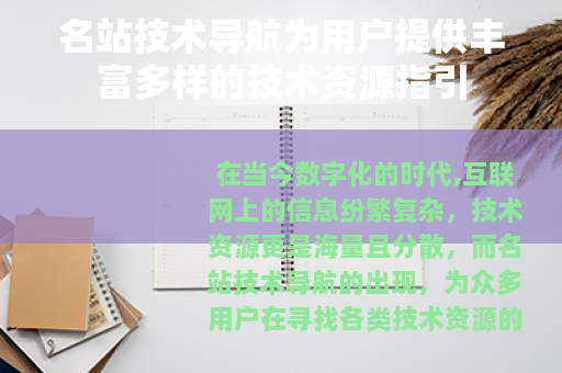 在当今数字化的时代,互联网上的信息纷繁复杂,技术资源更是海量且分散,而名站技术导航的出现,为众多用户在寻找各类技术资源的道路上点亮了一盏明灯。