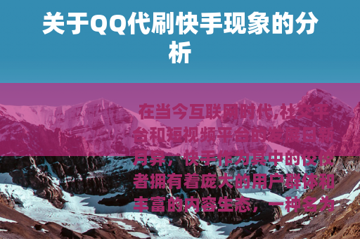 在当今互联网时代,社交平台和短视频平台的发展日新月异,快手作为其中的佼佼者拥有着庞大的用户群体和丰富的内容生态,一种名为QQ代刷快手的现象也逐渐进入了人们的视野。