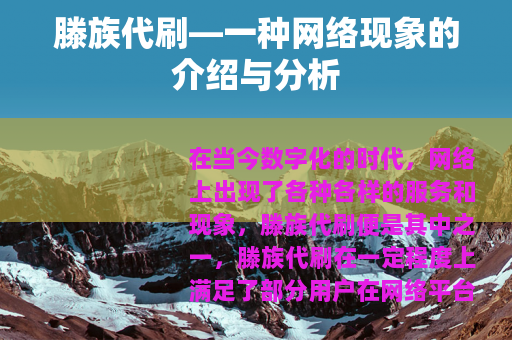 在当今数字化的时代,网络上出现了各种各样的服务和现象,滕族代刷便是其中之一,滕族代刷在一定程度上满足了部分用户在网络平台上的特定需求,有着其独特的存在意义和发展态势。
