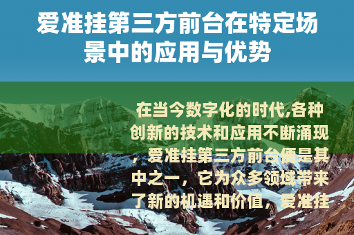 爱准挂第三方前台在多个领域都展现出了巨大的优势和潜力,为企业和机构的发展提供了有力的支持,为用户带来了更加便捷和高效的服务体验,随着技术的不断进步和完善,相信它在未来会发挥更加重要的作用,为社会创造更多的价值。