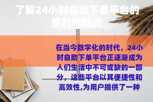 在当今数字化的时代,24小时自助下单平台正逐渐成为人们生活中不可或缺的一部分,这些平台以其便捷性和高效性,为用户提供了一种全新的购物和服务体验。