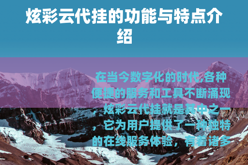 在当今数字化的时代,各种便捷的服务和工具不断涌现,炫彩云代挂就是其中之一,它为用户提供了一种独特的在线服务体验,有着诸多值得关注的方面。
