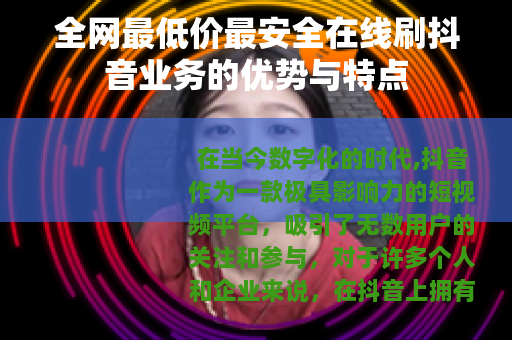 在当今数字化的时代,抖音作为一款极具影响力的短视频平台,吸引了无数用户的关注和参与,对于许多个人和企业来说,在抖音上拥有更高的曝光度和更多的粉丝数量成为了一种追求,而全网最低价最安全在线刷抖音业务的出现,为满足这些需求提供了一种有效的途径。