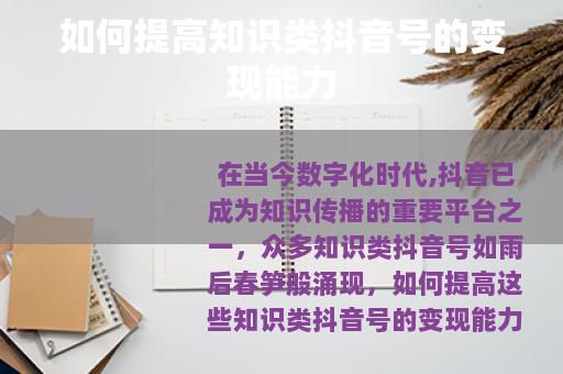 在当今数字化时代,抖音已成为知识传播的重要平台之一,众多知识类抖音号如雨后春笋般涌现,如何提高这些知识类抖音号的变现能力,却是许多创作者面临的一个关键问题。