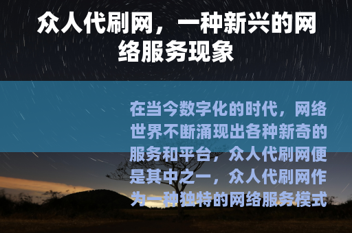 在当今数字化的时代,网络世界不断涌现出各种新奇的服务和平台,众人代刷网便是其中之一,众人代刷网作为一种独特的网络服务模式,在一定程度上满足了部分用户的特定需求。