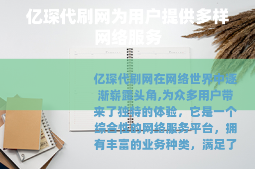 亿琛代刷网在网络世界中逐渐崭露头角,为众多用户带来了独特的体验,它是一个综合性的网络服务平台,拥有丰富的业务种类,满足了不同用户在网络生活中的各种需求。