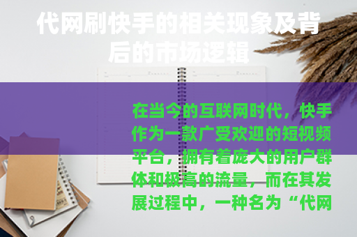 在当今的互联网时代,快手作为一款广受欢迎的短视频平台,拥有着庞大的用户群体和极高的流量,而在其发展过程中,一种名为“代网刷快手”的现象也悄然兴起。