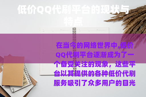 在当今的网络世界中,低价QQ代刷平台逐渐成为了一个备受关注的现象,这些平台以其提供的各种低价代刷服务吸引了众多用户的目光。