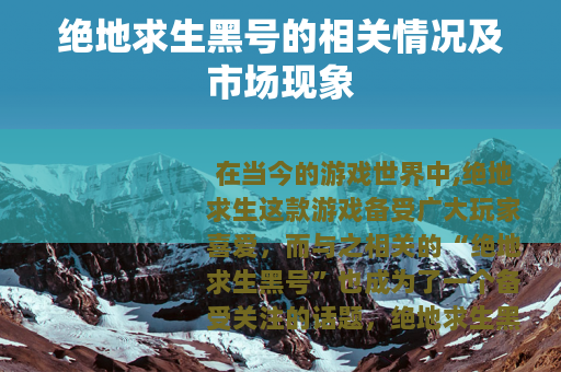 在当今的游戏世界中,绝地求生这款游戏备受广大玩家喜爱,而与之相关的“绝地求生黑号”也成为了一个备受关注的话题。