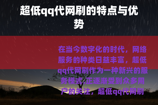 在当今数字化的时代,网络服务的种类日益丰富,超低qq代网刷作为一种新兴的服务模式,正逐渐受到众多用户的关注。