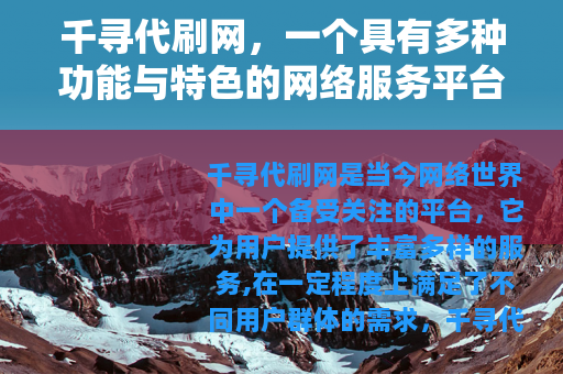千寻代刷网是当今网络世界中一个备受关注的平台,它为用户提供了丰富多样的服务,在一定程度上满足了不同用户群体的需求。