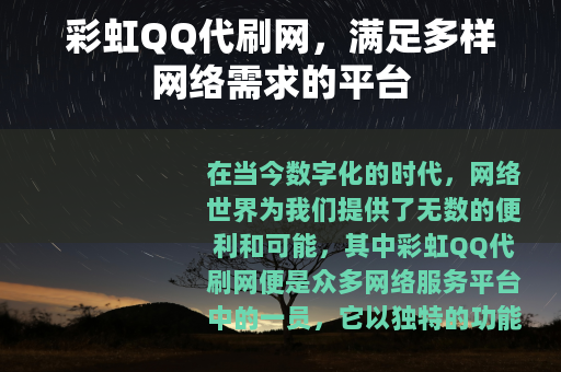 在当今数字化的时代,网络世界为我们提供了无数的便利和可能,其中彩虹QQ代刷网便是众多网络服务平台中的一员,它以独特的功能和服务,在网络的大舞台上占据了一席之地,为广大用户带来了别样的体验。