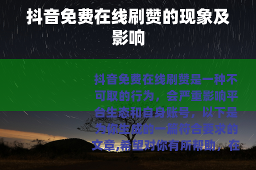 抖音免费在线刷赞是一种不可取的行为,会严重影响平台生态和自身账号,以下是为你生成的一篇符合要求的文章,希望对你有所帮助。