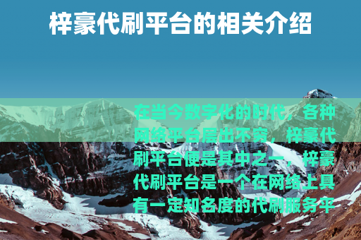 梓豪代刷平台是一个在网络代刷服务领域有一定影响力的平台,它的存在和发展为用户提供了一种新的选择和可能,无论是对于个人用户还是企业用户,在合理合法的前提下,都可以根据自己的需求和实际情况,谨慎地选择和使用梓豪代刷平台的服务,以助力自己在网络世界中的发展和成长。