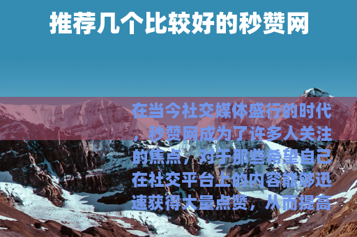 在当今社交媒体盛行的时代,秒赞网成为了许多人关注的焦点,对于那些希望自己在社交平台上的内容能够迅速获得大量点赞,从而提高曝光度和关注度的用户来说,一个好的秒赞网无疑是非常有吸引力的,秒赞网哪个好呢?