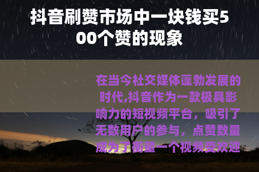 在当今社交媒体蓬勃发展的时代,抖音作为一款极具影响力的短视频平台,吸引了无数用户的参与,点赞数量成为了衡量一个视频受欢迎程度的重要指标之一,而在这个庞大的市场中,出现了一种引人注目的现象,那就是一块钱可以买到500个赞。