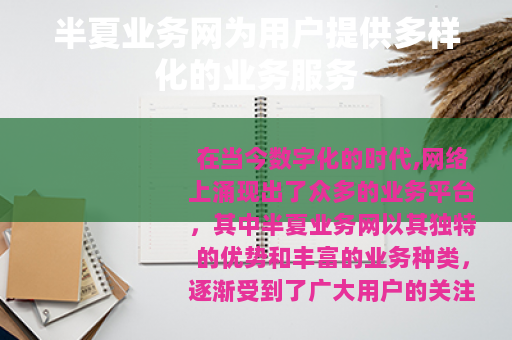 在当今数字化的时代,网络上涌现出了众多的业务平台,其中半夏业务网以其独特的优势和丰富的业务种类,逐渐受到了广大用户的关注。