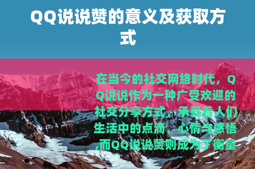 在当今的社交网络时代,QQ说说作为一种广受欢迎的社交分享方式,承载着人们生活中的点滴、心情与感悟,而QQ说说赞则成为了衡量一条说说受欢迎程度和影响力的重要指标之一。