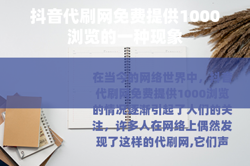在当今的网络世界中,抖音代刷网免费提供1000浏览的情况逐渐引起了人们的关注,许多人在网络上偶然发现了这样的代刷网,它们声称能够为抖音用户免费带来1000的浏览量。