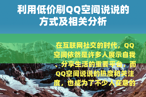 在互联网社交的时代,QQ空间依然是许多人展示自我、分享生活的重要平台,而QQ空间说说的热度和关注度,也成为了不少人在意的事情,低价刷QQ空间说说的现象逐渐兴起,吸引了众多用户的目光。