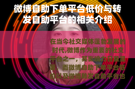 在当今社交媒体蓬勃发展的时代,微博作为重要的社交平台之一,其影响力日益显著,而微博自助下单平台低价以及微博转发自助平台也随之兴起,成为了一些人关注的焦点。