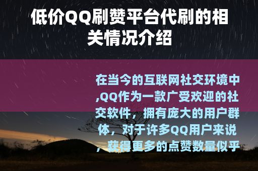 低价QQ刷赞平台代刷服务是互联网社交环境下的一种特殊现象,它既有其存在的市场需求,也面临着诸多挑战和问题,用户在使用时需要谨慎对待,充分认识到其利弊,做出明智的选择,以确保自己在社交网络中的体验和发展是健康、可持续的。