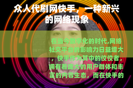 在当今数字化的时代,网络社交平台的影响力日益增大,快手作为其中的佼佼者,拥有着庞大的用户群体和丰富的内容生态,而在快手的发展过程中,众人代刷网快手这一现象逐渐崭露头角,引起了众多人的关注。