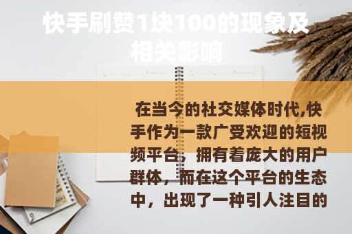 在当今的社交媒体时代,快手作为一款广受欢迎的短视频平台,拥有着庞大的用户群体,而在这个平台的生态中,出现了一种引人注目的现象,那就是所谓的“快手刷赞1块100”。